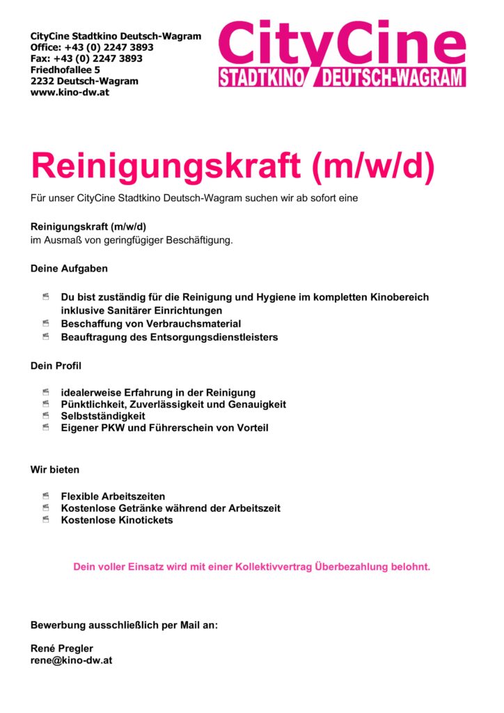 Wir freuen uns auf Deine Bewerbung unter rene@kino-dw.at
